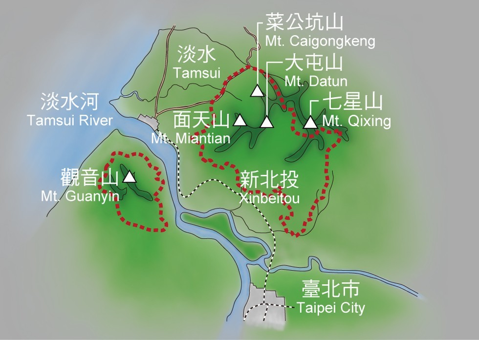 - 二子坪服務站→大屯車道-→大屯主峰-→大屯南峰-→大屯西峰-→面天坪涼亭→二子坪服務站